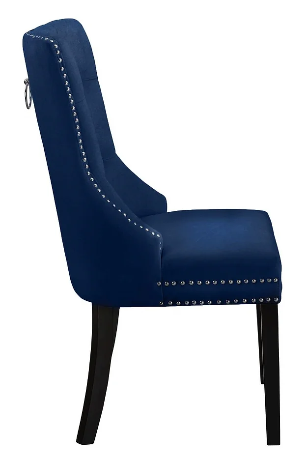 Navy Blue Velvet Dining Chair with Nail Head Details