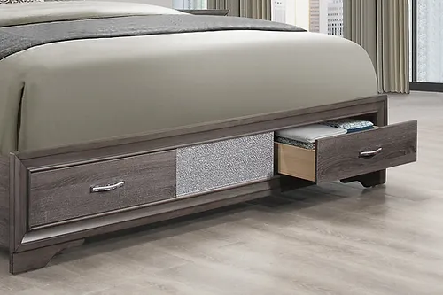 Make your bedroom sparkle with the Harper ‘Seville’ bedroom collection. Featuring an on-trend weathered grey finish accented with just the right amount of bling, jewelry and under bed storage. Dresser containes a Pull-Out Jewelry Drawer offering uncompromising style and value.