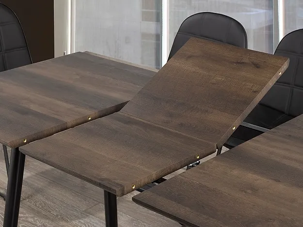 Table: Wooden Table With Self Storing Butterfly Extension Leaf and Black Metal Legs