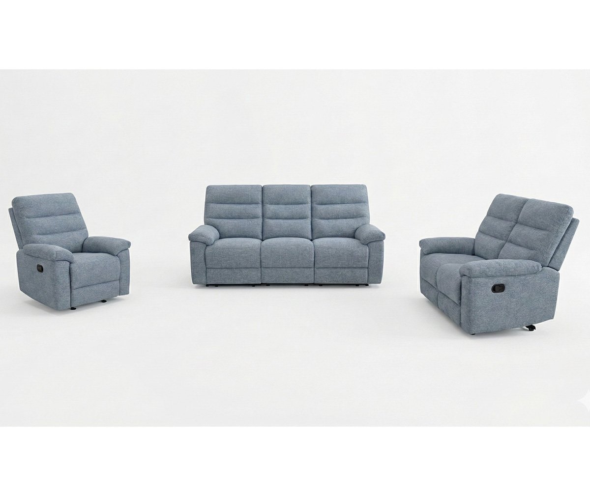 Upgrade your living space with this comfortable and stylish fabric manual recliner sofa set in a modern grey finish. Upholstered in soft, durable fabric, it features plush cushioning and a smooth reclining mechanism for effortless relaxation.